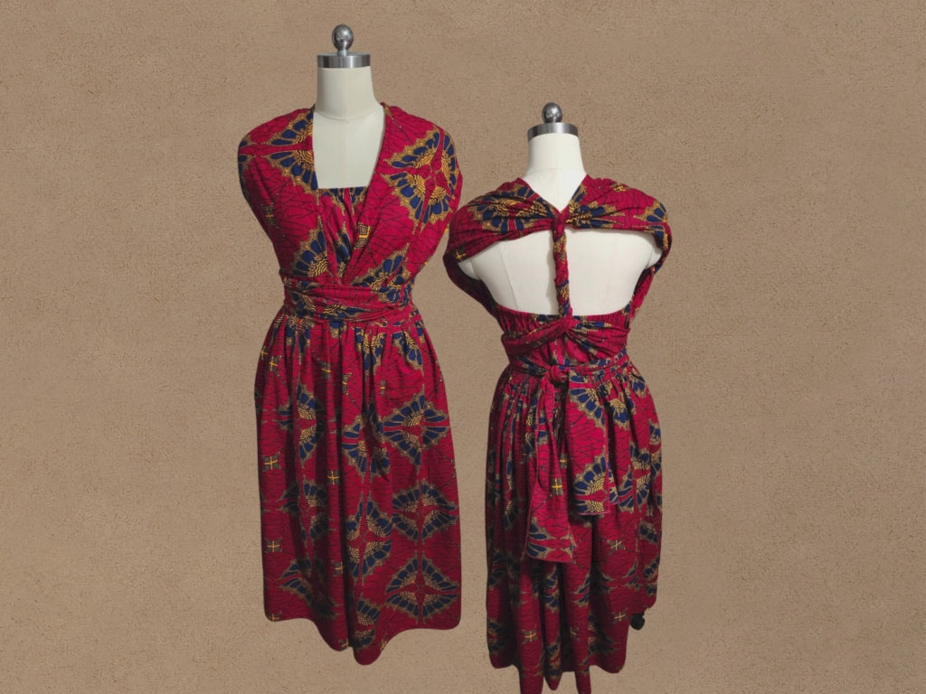 - Bold and Beautiful Ankara Fabric: The Infiniti Dress features a striking red fabric adorned with intricate patterns that evoke a sense of cultural richness and modern flair.